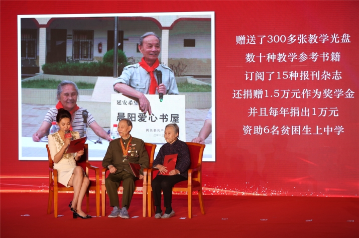 北京市军队离休干部陈荣超与妻子杨玉仙分享他们退休后继续为希望工程捐款的感人故事。(主办方供图)