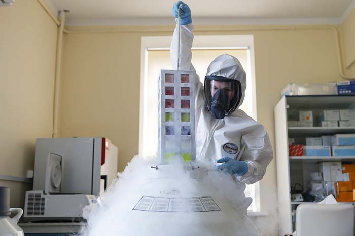 8月6日,在位于俄罗斯首都莫斯科的“加马列亚”流行病与微生物学国家研究中心,研究人员在实验室内工作。 新华社发(俄罗斯直接投资基金供图)