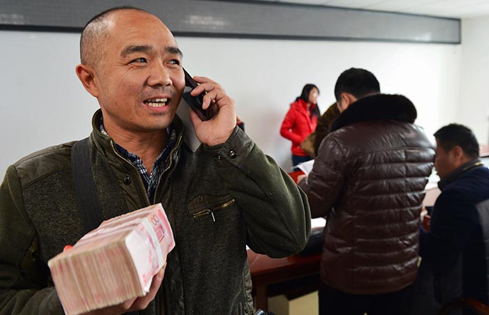 1月21日,莆田市城厢区住建局大会议室里,在区政府相关部门工作人员、项目业主和工地负责人见证下,参与此项目的农民工们领到区政府为他们先行垫付的部分工资款共150万元,今年,张敏和他的伙伴们可以安心返乡了。 新华社记者魏培全 摄