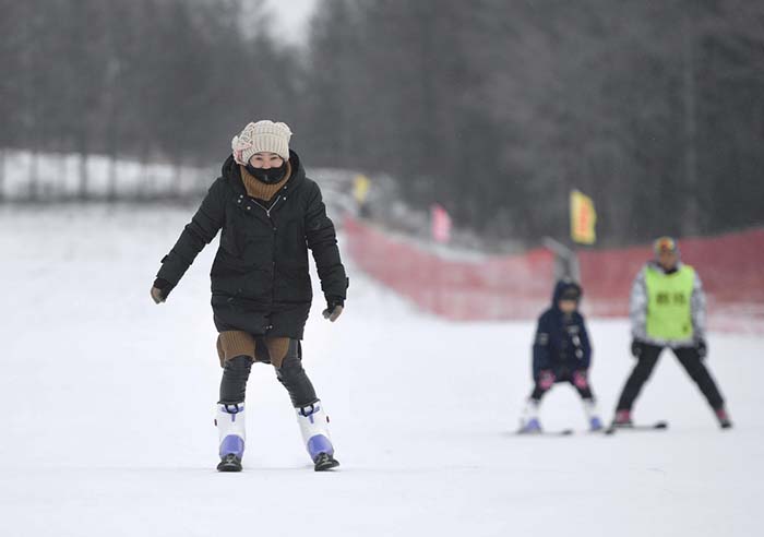 游客在二合雪乡滑雪场内体验滑雪(1月25日摄)。 新华社记者许畅 摄