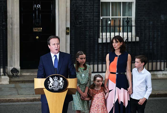 7月13日,在英国伦敦,英国离任首相卡梅伦及家人离开唐宁街10号首相府。 新华社记者韩岩 摄