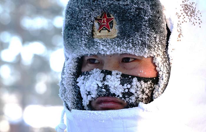 驻守在漠河县北极村的北部战区陆军某部官兵在巡逻途中(2月5日摄)。 新华社记者李刚 摄