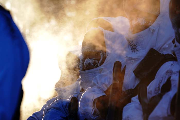 驻守在漠河县北极村的北部战区陆军某部官兵巡逻间隙展开训练(2月5日摄)。 新华社记者李刚 摄