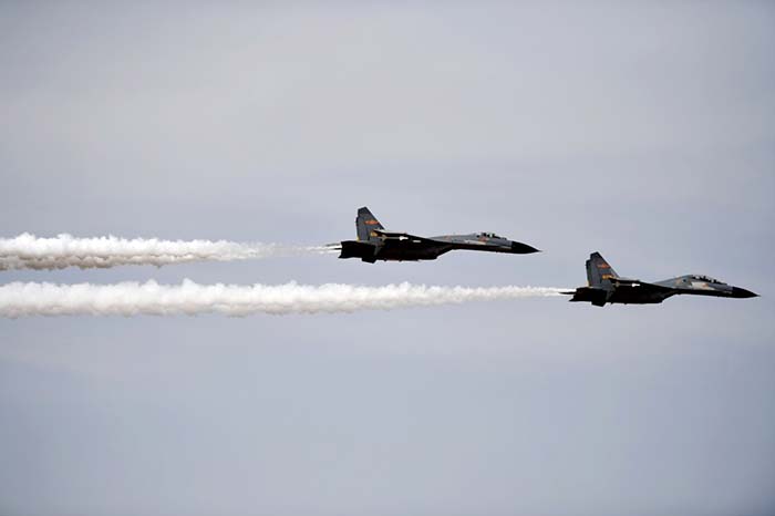 3月28日,我空军两架战机为志愿军烈士护航。 新华社记者杨青 摄