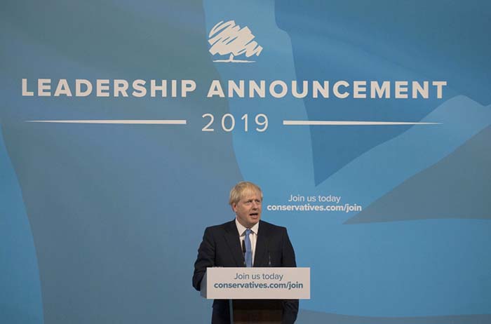 7月23日,在英国伦敦,新当选的英国保守党领袖鲍里斯·约翰逊发表演讲。