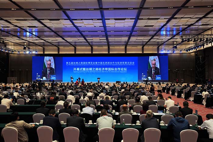 当日,第五届丝绸之路国际博览会暨中国东西部合作与投资贸易洽谈会在陕西西安开幕。 新华社记者张博文 摄