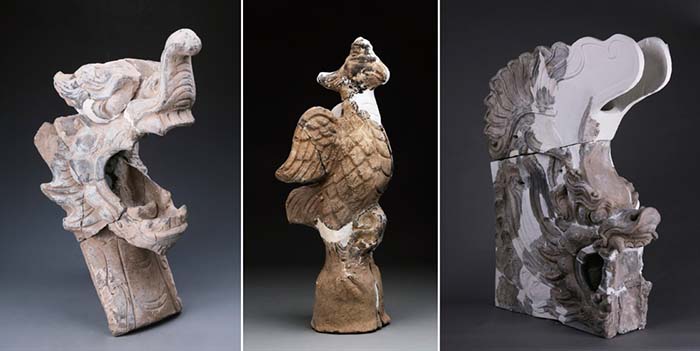 河北张家口市太子城金代城址出土的建筑构件(拼版资料照片)。 新华社发