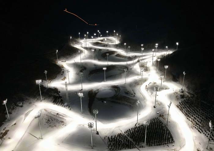 这是12月23日拍摄的张家口赛区国家冬季两项中心的赛道(无人机照片)。 新华社记者杨世尧 摄