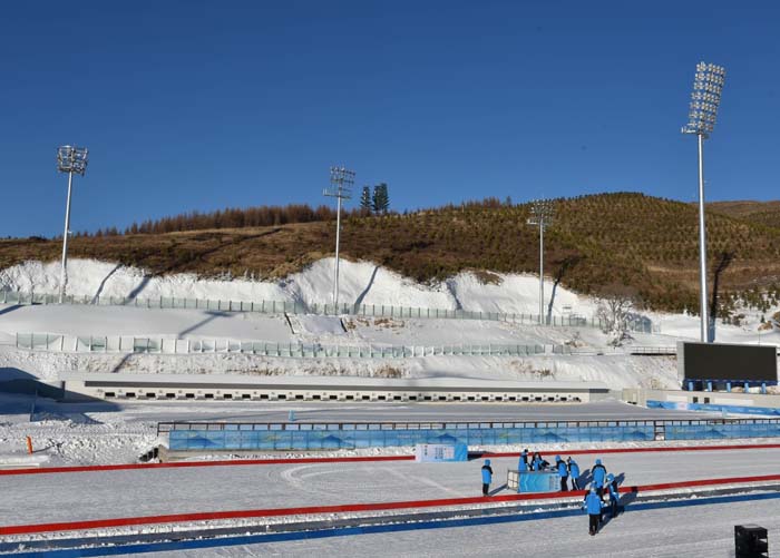 12月27日,工作人员在张家口赛区国家冬季两项中心工作。 新华社记者杨世尧 摄