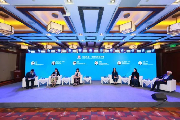 中国社会科学院国际中国学研究中心主任唐磊,清华大学新闻与传播学院副院长、教授杭敏,北京师范大学文化创新与传播研究院教授、联合国教科文组织文化可持续发展专委会成员杨越明,席勒研究院创始人兼主席黑尔佳·策普·拉鲁什,英国皇家社会科学院院士、北京师范大学外籍教授罗伯特·沃克,迪拜公共政策研究中心全球事务部主任谢哈·娜吉拉·卡西米等中外嘉宾围绕文明交流互鉴推动世界和平发展主题作圆桌讨论。嘉宾一致认为,世界不同文明间的交流互鉴,有助于各国相互学习、增进理解、化解冲突,共同为人类构建一个和平、繁荣的未来。数字科技的发展正引领数字文明时代的到来,为文明交流互鉴带来新机遇。