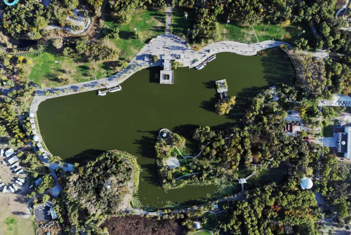 这是10月7日拍摄的哈尔滨太阳岛国家湿地公园景色(无人机照片)。新华社记者王松 摄